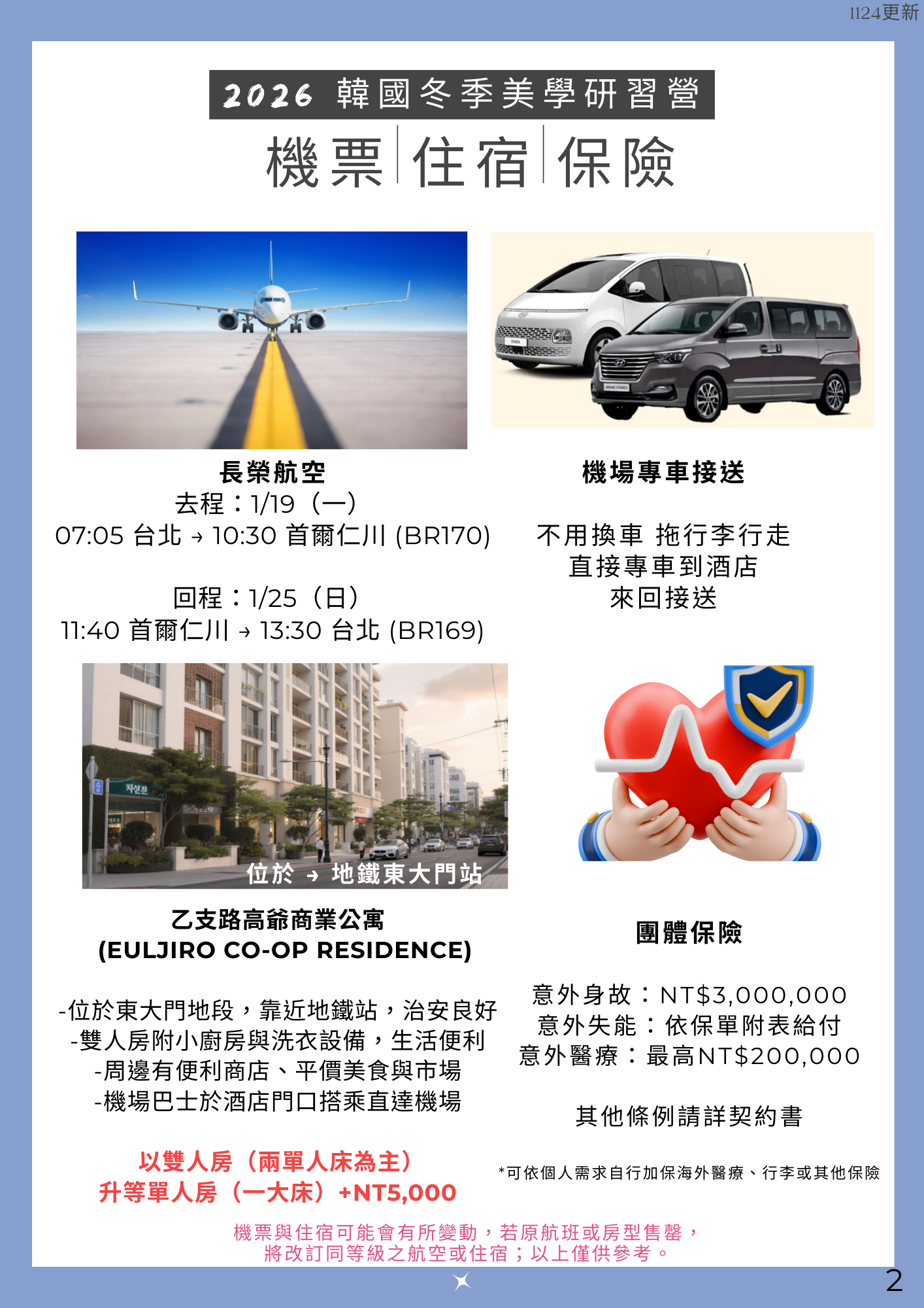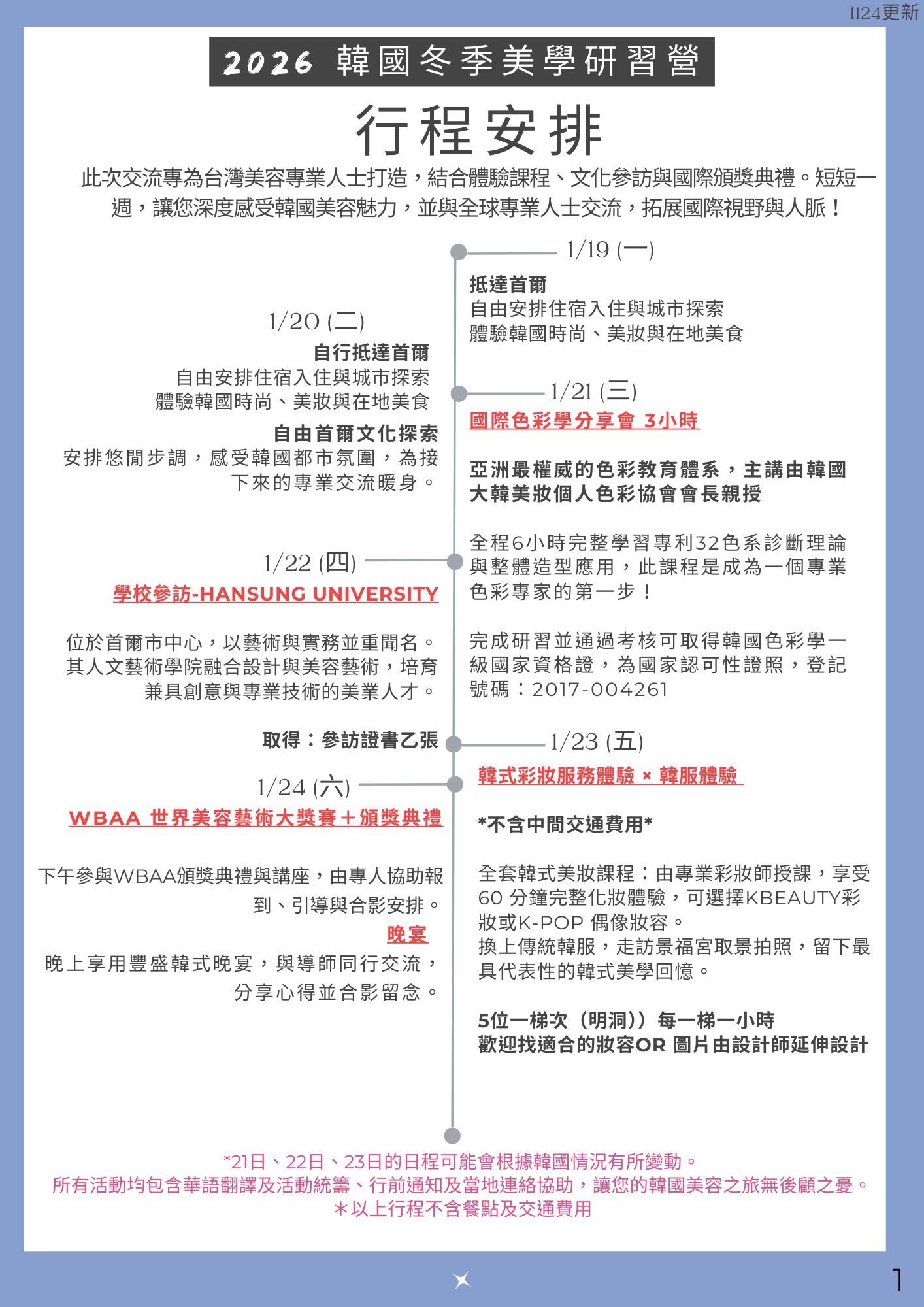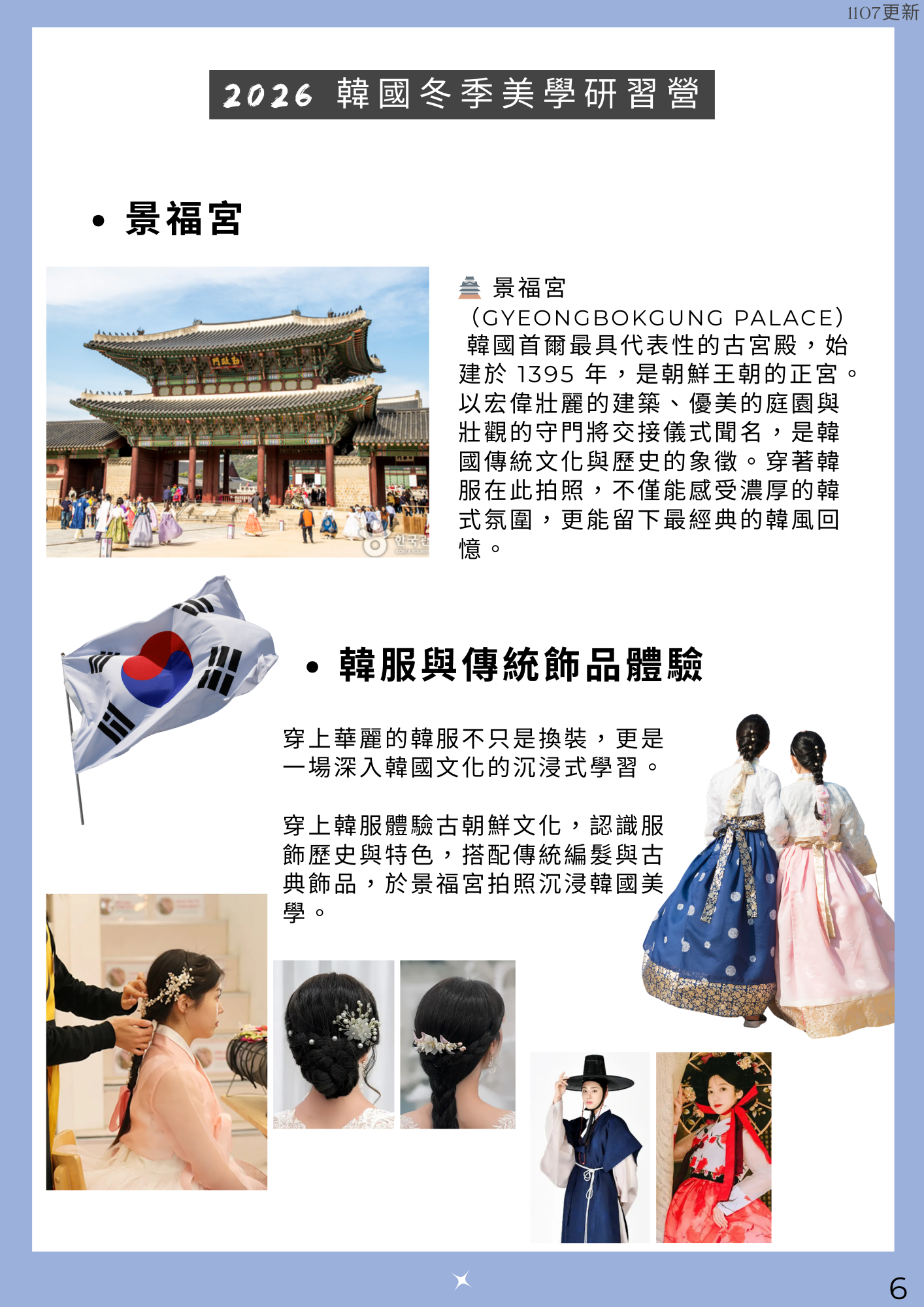國際交流|2026.01. 韓國🇰🇷冬季美學研習團 七天六夜!火熱招募團友中~