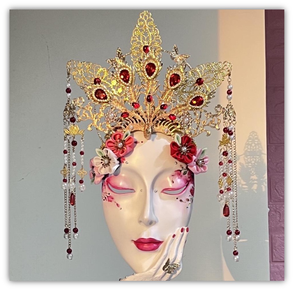 Facial makeup, including but not limited to themes such as stage makeup, television makeup, photography makeup, bridal makeup, evening party makeup, and body painting. -