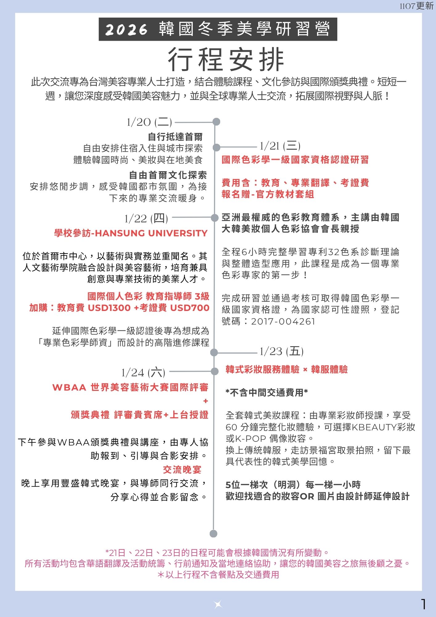 國際交流|2026.01. 韓國🇰🇷國際評審冬季美學研習團 !最後席位招募中~